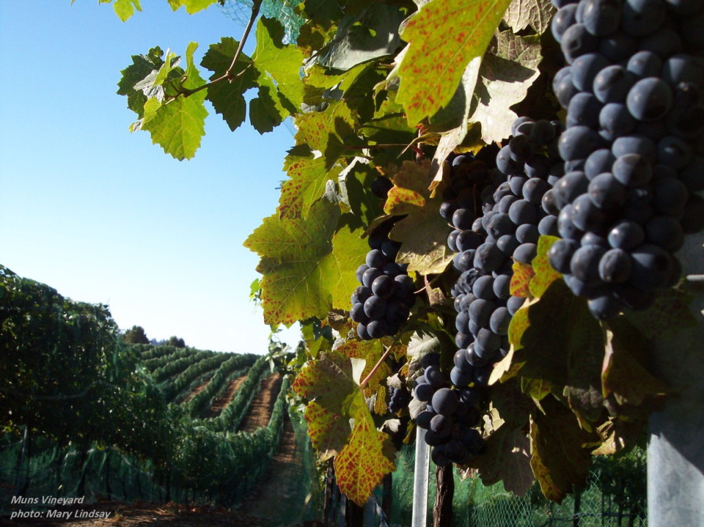 Our Wines: Pinot Noir under our Muns Vineyard brand label is known for its complexity and structure, with balanced tannins, acidity, fruit and minerality; and a silky, velvety mouthfeel. Most notable is the flavor of black cherry combined with an earthy component evocative of the Muns Vineyard terroir. Our wines age beautifully. The wine’s complexity and character is due to a combination of terroir, winemaking, and the blend of the four Pinot Noir clones we grow in the vineyard.